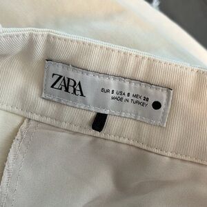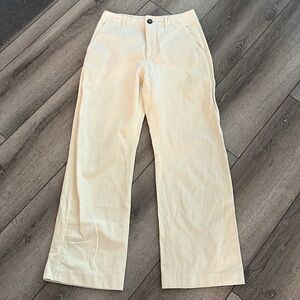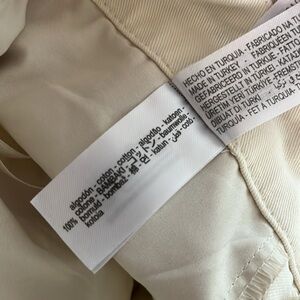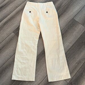 Pants with a mid waist made of 100% cotton. Belt loops. Front pockets and back buttoned welt pockets. Front zip and contrasting button closure.