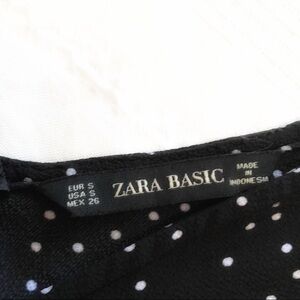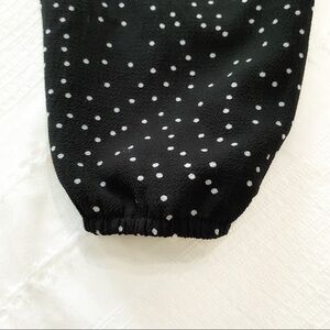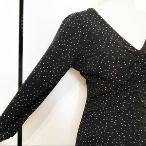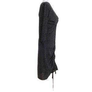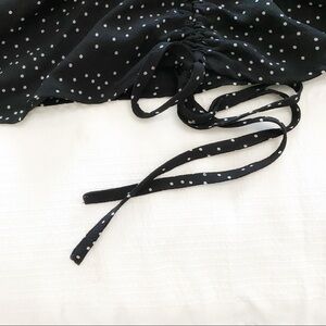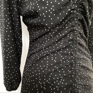 Zara BLACK WHITE POLKA DOT LACE UP RUCHED HALF SLEEVE MIDI DRESS - S