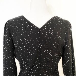 ZARA BLACK WHITE POLKA DOT LACE UP RUCHED HALF SLEEVE MIDI DRESS, A formal, classy, classic cocktail black & white polka dot pattern lace up front cinched / ruched half sleeve midi dress with a wide boat v-neckline - zip up in the back - unlined - minimal to no stretch - half sleeve with elastic cuffs. Go to dress for barely any dressed occasions from a first date to a fancy dinner at a restaurant, family reunion, work cocktail with colleagues, holiday's party seasons, wedding guest outfit and more. Wearable all year long from summe to winter.