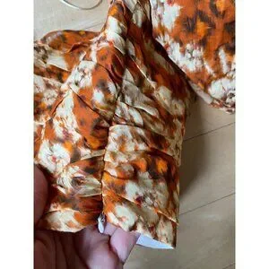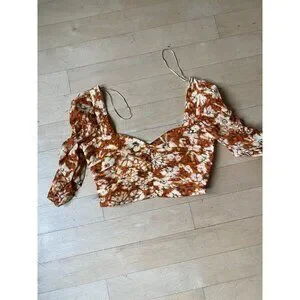Zara BNWOT womens printed crop top sz small orange floral puff sleeve