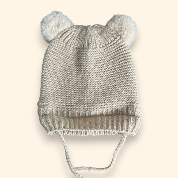Zara Baby Knit Bear-Ear Winter Hat | 38 cm | Beige Cozy Hat
