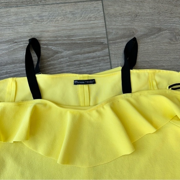 Zara Baby Yellow Cold Shoulder Ruffles Lace zip Sleeves Dress