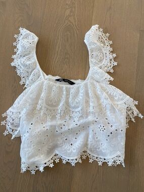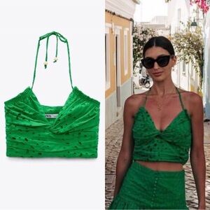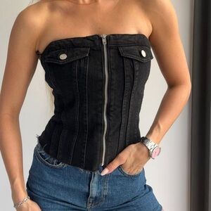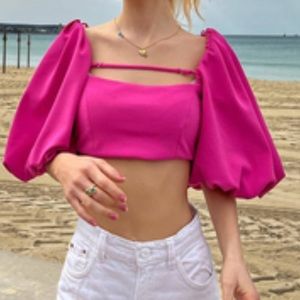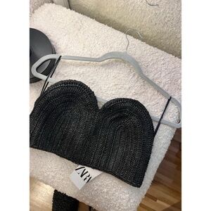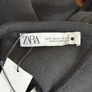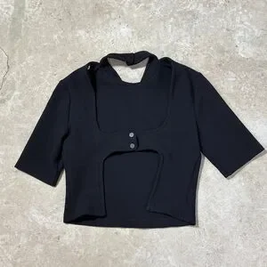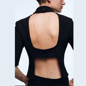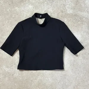 Zara Back Cut Out Crop Top Women’s Small Black Snaps Short Sleeve NWT
