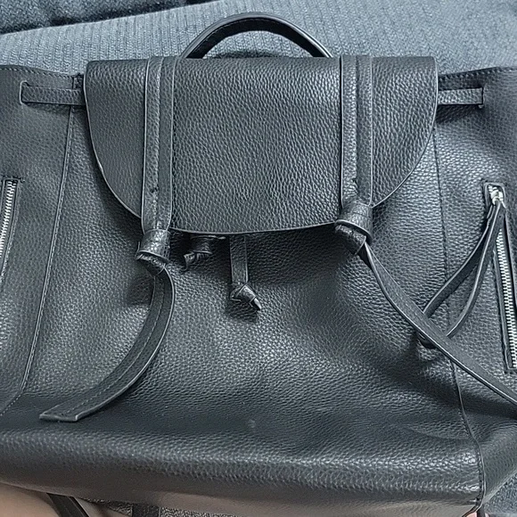 Zara Basic back pack. adjustable straps, 2 zipper pockets on the front. Drawstring closure with snap over top.