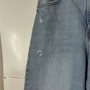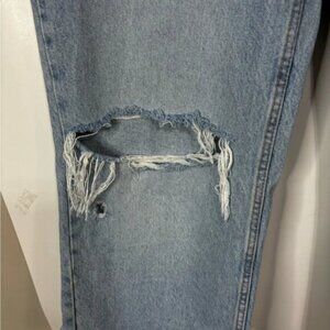 Zara Baggy Jeans Womens 6 Blue Light Wash Denim Raw Hem Cropped Distressed