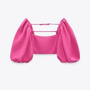 NWT Zara Crop Top Balloon sleeve. Corset style back.