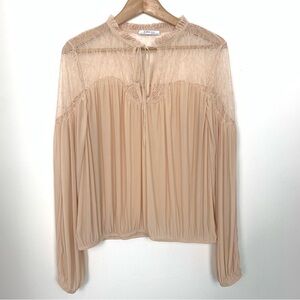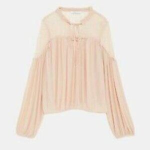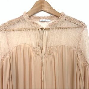 Zara Nude Lace Yoke Balloon Sleeve Blouse Top Sz L