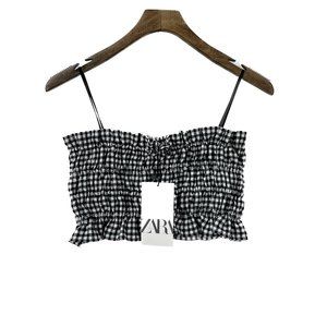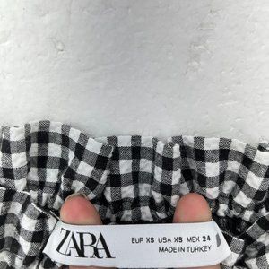 Zara Bandeau Crop Ruched Gingham Top NWT SIZE XSFlat-lay Measurements:Pit to Pit: 12-22'' Length: 8'' Condition: Pre-Owned Like New Effortlessly chic and figure-flattering, this Zara bandeau top is a must-have for any fashion-forward wardrobe. Featuring a trendy gingham print and ruched detailing, it's the perfect combination of playful and elegant. Plus, its lightweight material and comfortable fit make it ideal for all-day wear. Trust us, this is the piece that will elevate your outfits and turn heads wherever you go. Don't miss out on the opportunity to add it to your collection!