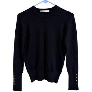 Crew neck long sleeve sweater finished with gold buttons on sleeves.