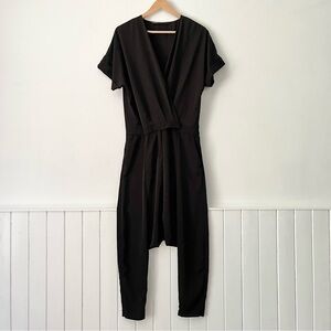 Zara Basic Black Plunge Neck Ankle Zip Harem Jumpsuit Size S