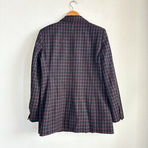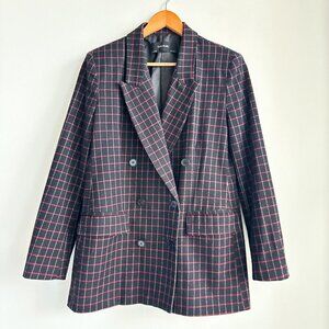 Zara Basic Black Red Window Pane Plaid Double Breasted Blazer M