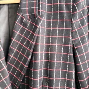 Zara Basic Black Red Window Pane Plaid Double Breasted Blazer M.