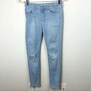 Zara Basic Classic Skinny Jeans Light Blue Wash Size 2 Distressed Busted Knee