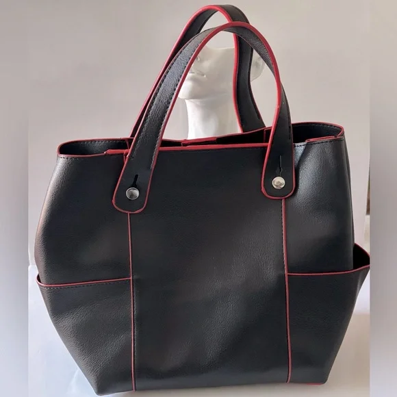 Gorgeous, Trendy, Like New, Zara Basic Collection Black and Red Faux Leather Bag. I love this bag, I'm just rotating my closet at the moment. My loss is your gain!
