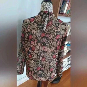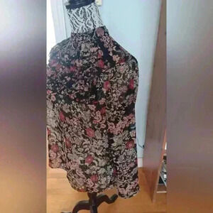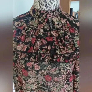 Zara Basic Collection Women's Medium Sheer Ruffle Front Flowered Print Blouse