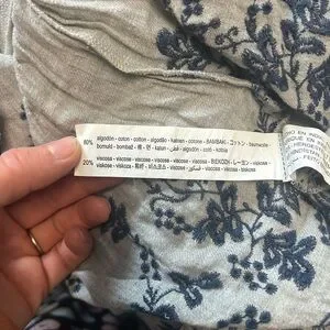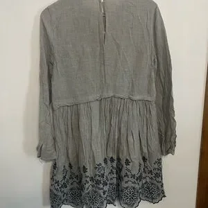 Simple gray flowy midi dress with embroidered accents. Soft fabric with a classic design.