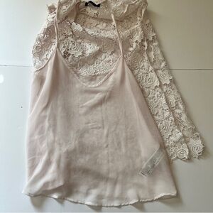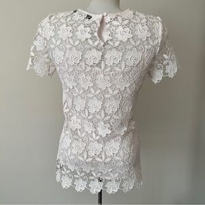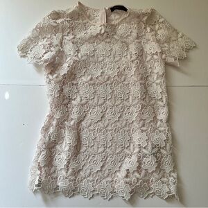 Zara Basic Guipure Lace Top Blouse Short Sleeve Lined Tank Top Floral Pink Sz XS