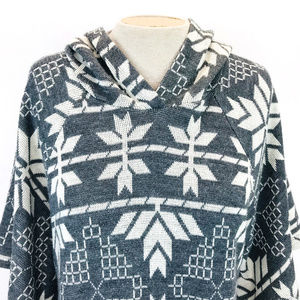 Zara Basic Ivory Grey Aztec Knit Sweater Poncho M