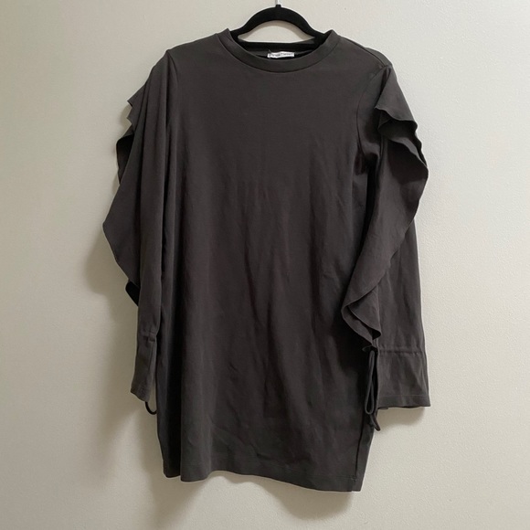 NWOT Zara charcoal grey sweatshirt dress. Crewneck with ruffled long sleeves.