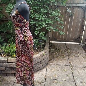Stylish maxi dress with a vibrant multicolor pattern. Features a flattering V-neck and adjustable straps. Perfect for any occasion.