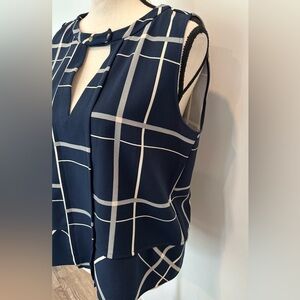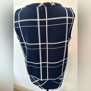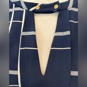 Zara Basic Navy Blue Work Wear Blouse Top Snap Neck Collar Large Stripes