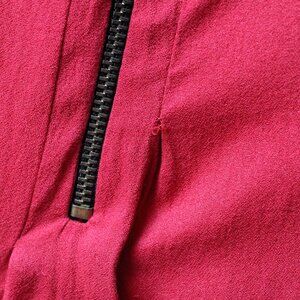If you look through all the pictures you can see some stitches came out on the back near the zipper.