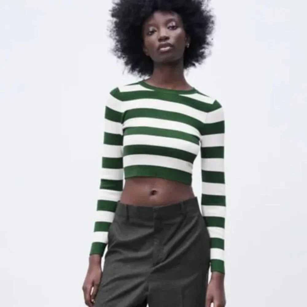 Zara basic knit long sleeve cropped sweater. Striped.