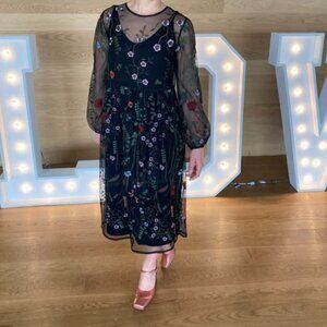 Zara Basic Sleeveless Black, flower print Dress Size M / New without tag