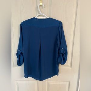 Zara blouse Lind sleeves can be adjusted and secured by button navy blue colour size M