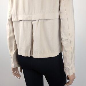 Zara Basic Waterfall Blazer Jacket Moto Draped Khaki Neutral Open Front Flowy