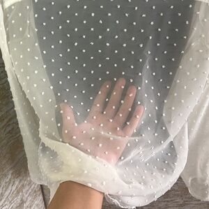 Zara Basic White Dot Chiffon Puff Sleeve Blouse Size M