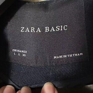 Zara Basic Women's Ladies Dark Blue Navy Wool Coat Jacket with Hood Size (L)