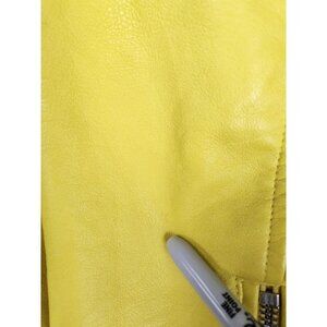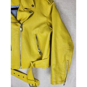 Zara Basic Women's Large Faux Leather Jacket Mustard Yellow Biker