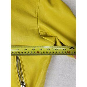 Zara Basic Mustard Yellow Faux Leather Biker Jacket Large. Measures 21.5" x 17" Long. Jacket has a few little marks shown in photo