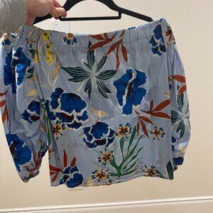 Zara Basic XS Off-Shoulder Floral Striped Blouse – Like New