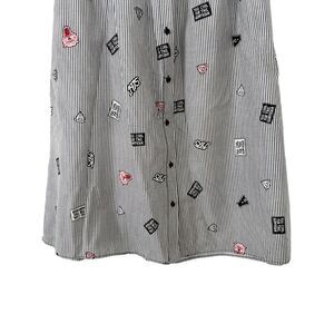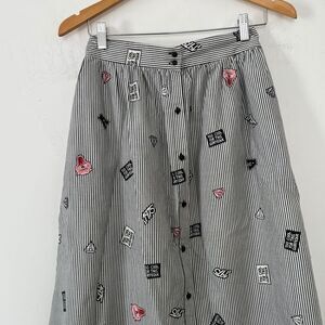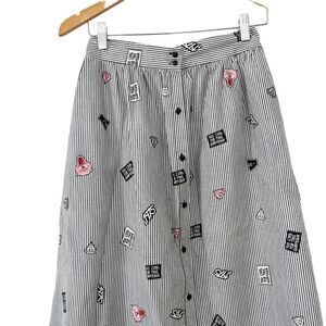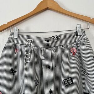 Zara Basics Twee Black White Pinstripe Quirky Pattern Buttons Full Skirt