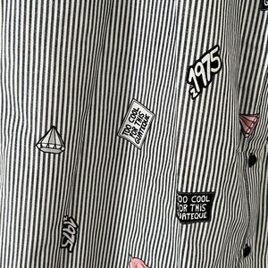 Zara Basics Black White Pinstripe Quirky Pattern Buttons Full Skirt