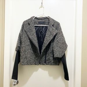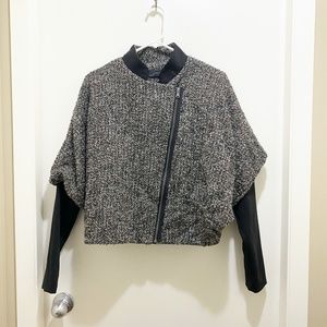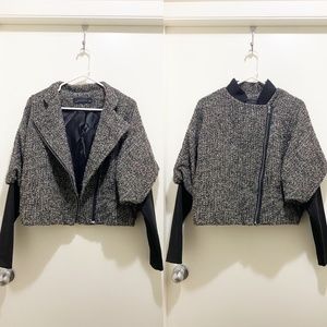 Zara Batwing Convertible Tweed Jacket Mandarin Collar or Lapels Grey Black M