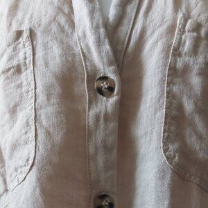 * Beige or tan colored fabric - material tag has been removed but feels very much like linen