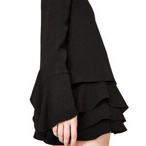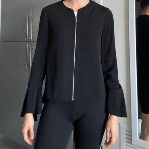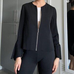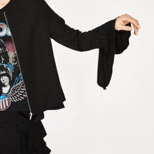 Zara Black Bell Sleeve Zip Up Blazer Jacket Sz L
