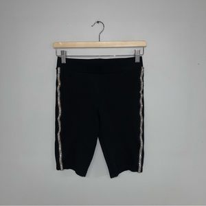 Zara Bike Shorts Women's Size Medium Black Silver Bling Bejeweled Side Stripe