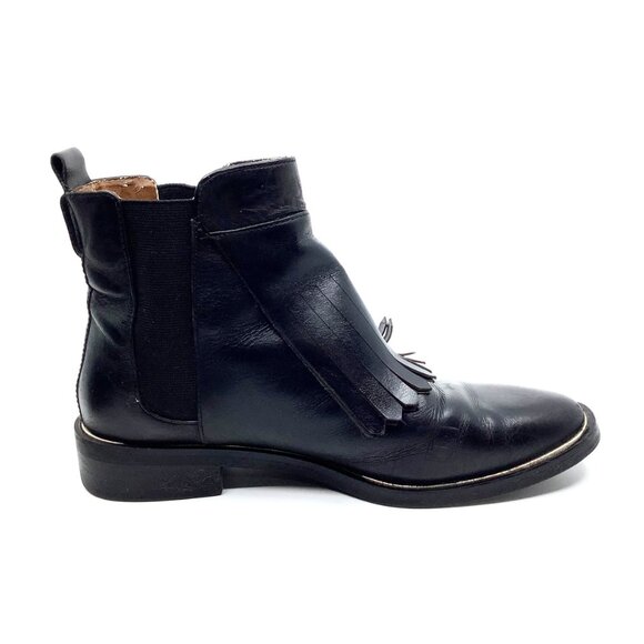 Stylish black ankle boots. Features fringe detail. Perfect for any occasion.