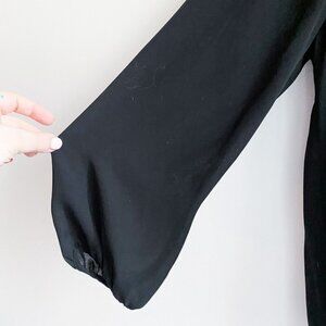 This is a black chiffon blouse from Zara, designed for women in regular size. It features long sleeves, a round neckline, and a solid pattern.