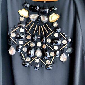 The blouse is embellished with beaded accents, adding a touch of elegance to the basic style.