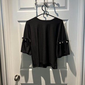 A black comfortable Zara shirt with pearl details on the sleeves. In great condition