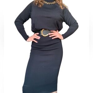 Zara Black Bodycon Dress Fitted Knit Midi Long Sleeve Small