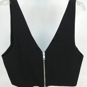 Zara Woman cropped bralette top in black with silver zipper detail.