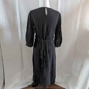 Zara Black Cotton Gauze Midi Dress with Slits and Back Tie Size Small Minimalist