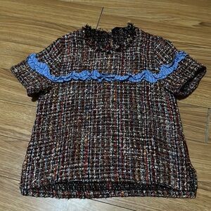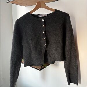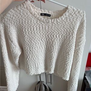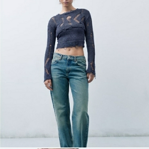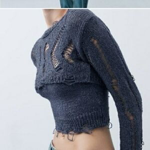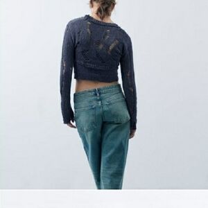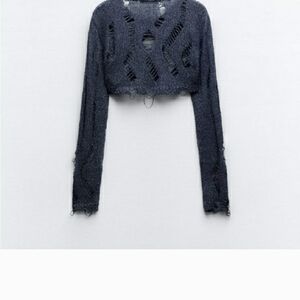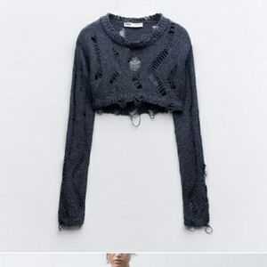 Zara Black Distressed Knit Crop Sweater