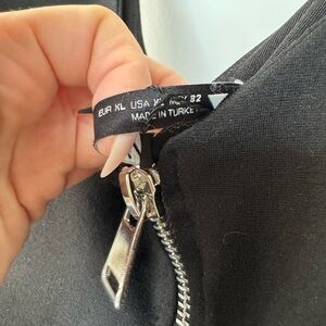 Elegant black dress with a sleek zipper detail. Adorable and chic with a unique detail.